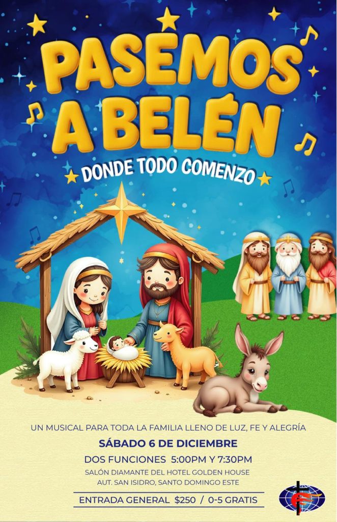 🎭 “Pasemos a Belén: Donde todo comenzó” Un musical navideño para toda la familia, lleno de luz, fe y alegría, que nos llevará al hermoso momento donde nació la esperanza: Jesús. 📅 Fecha: Sábado 6 de diciembre🕔 Dos funciones: 5:00 p.m. y 7:30 p.m.📍 Lugar: Salón Diamante del Hotel Golden House, Aut. San Isidro, Santo […]